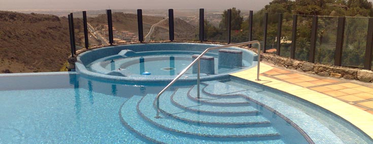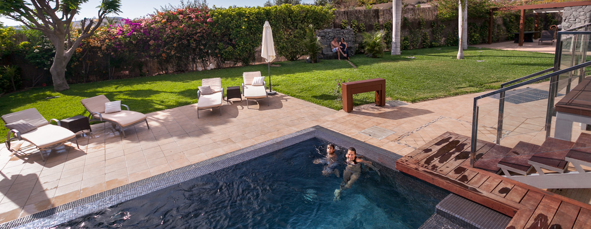Edler Pool mit Wasserfallanlage in El Hornillo