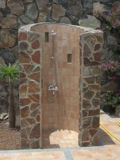 Passend zu ihrem Garten und ihrem Pool fertigen wir gerne eine Dusche ganz nach Wunsch.