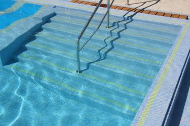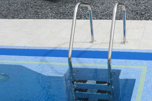 Die Leiter bildet die platzsparendste und kostengünstigste Lösung. Dies ist sowohl für kompakte Pools eine interessante Lösung als auch bei öffentlichen Becken als Ergänzung zu den Treppen. Dadurch können die notwendigen Ausstiegsmöglichkeiten realisiert werden.