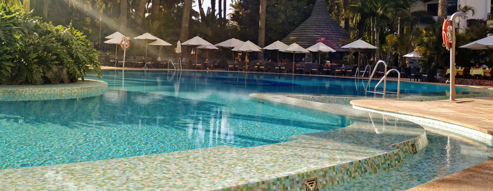Der 1000 m² Pool mit Insel wurde in nur 20 Tagen vollsaniert und neu designed.