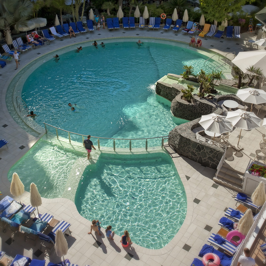 Der Hauptpool des Hotels wurde komplett renoviert, neu abgedichtet und mit grünen Keramik-Fliesen neu designed.