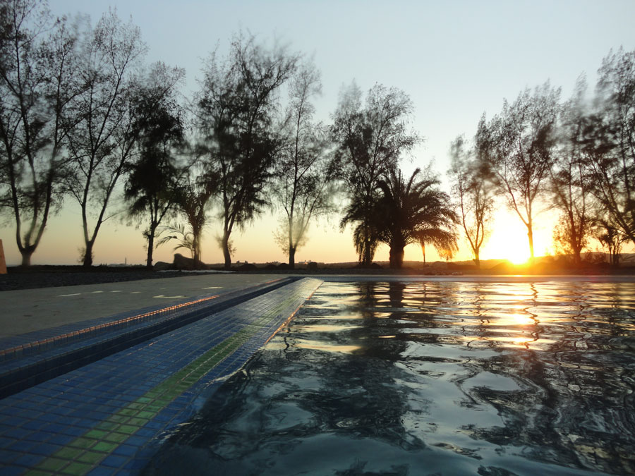 Der Pool hat eine Schwimmlänge von 16 Metern, besitzt eine optimale Wassertiefe von 1,4 Metern und ist, dank seiner Treppen, auch gut für ältere Menschen und Kinder geeignet. Es handelt sich um ein sogenanntes "Sohlebad", das ganz ohne den störenden Chlorgeschmack auskommt. Dabei ist der Salzgehalt des Wassers niedriger als der unserer Augenflüssigkeit, wodurch ein unangenehmes Brennen vermieden wird.